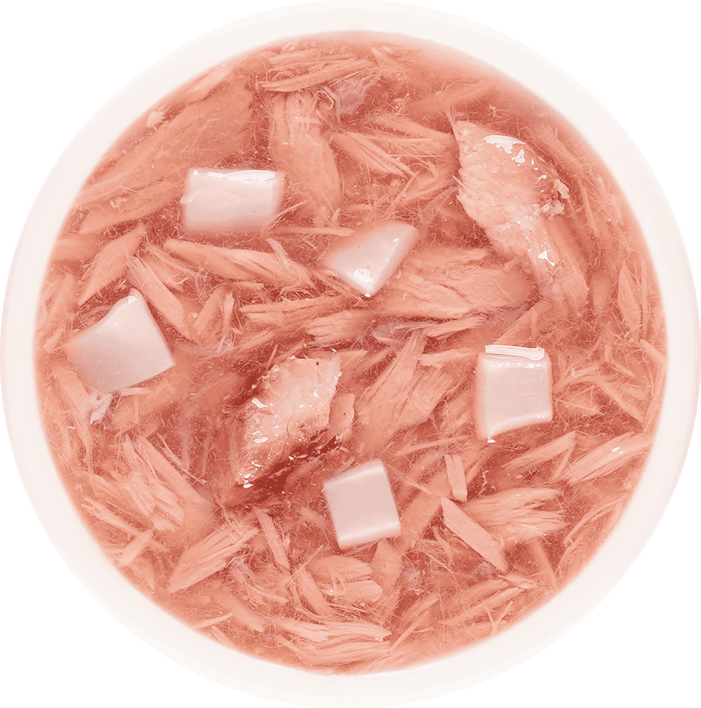 Состав: бульон из тунца - 71,3%, тунец - 20%, кальмар-4%, макрель-4%, желирующая добавка, экстракт тунца, витамин Е, таурин.nПищевая ценность, %: протеин — 10,5; жир — 0,2; клетчатка — 1; зола — 1,5; влажность — 89;nЭнергетическая ценность на 100 г — 30,8 ккал.