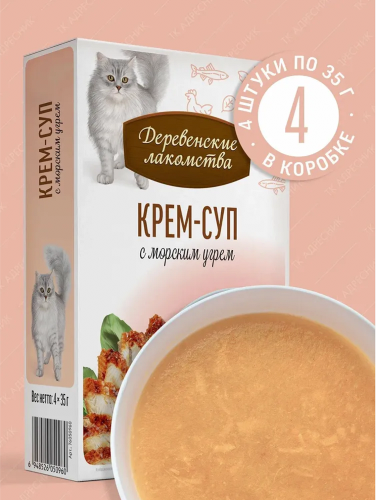 НАБОР Деревенские лакомства Угорь Морской : СУП 4*35 г для кошек