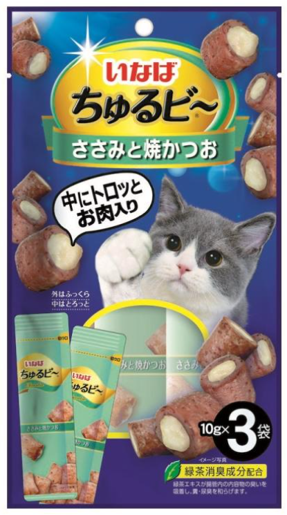 Запеченные трубочки Churu Bee (ЧУРУ БИ) с нежной кремовой начинкой на основе куриного филе и тунца от японского производителя Inaba, трубочки имеют усиленный вкус вяленого тунца Кацуо, поэтому лакомство не оставит равнодушным даже самых привередливых кошек. Корма и лакомства Inaba отличаются высоким качеством и неповторимым вкусом, ведь они изготавливаются только из отборных традиционных японских ингредиентов! Во все продукты добавлен экстракт зеленого чая, который, благодаря содержанию катехина, обладает нейтрализующим действием на запах содержимого кишечника. Лакомство обогащено витамином Е - натуральным антиоксидантом, поддерживающим иммунную систему, не содержит искусственных добавок, красителей и консервантов. Ингредиентный состав: куриное филе, тунец Кацуо, кацуобуси, куриный жир, крахмал, яичный белок, экстракт курицы, дрожжевой экстракт, агар-агар, казеинат натрия (молочный белок), полисахариды, витамин E, экстракт зеленого чая, красный ферментированный рис. Аналитический состав: белок – не менее 24%, жиры – не менее 4,2%, клетчатка – не более 0,1%, зола – не более 2%, влажность – не более 69,5%. Энергетическая ценность: 60 ккал. Подробнее
