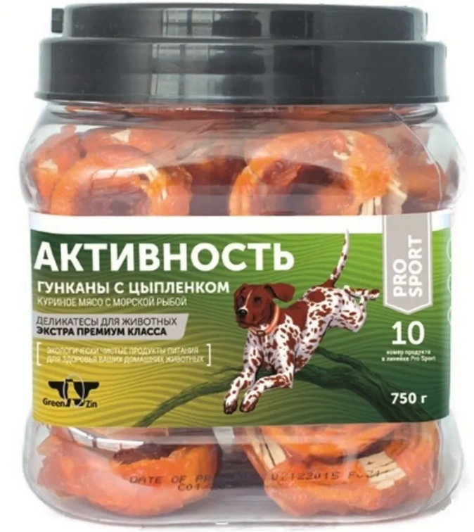 Лакомство: АКТИВНОСТЬ. Гунканы с цыплёнком. 100% натуральные. ПОЛЕЗНЫЕ СВОЙСТВА: питает клетки головного мозга, улучшает память; способствует выведению шлаков из суставов;усиливает кроветворную функцию костного мозга. РЕКОМЕНДУЕТСЯ: не имеет ограничений по количеству и частоте приема, рекомендуется, в том числе, мелким породам собак и молодым щенкам, не достигшим одного года. При тренировке собак используется вкусо-поощрительный метод, когда за выполнение определенной команды, питомец получает небольшой кусочек лакомства. Профессиональные дрессировщики и собаководы-любители испытывают определенные трудности с выбором лакомств для награды мохнатых друзей: печенье крошится, сыр окисляется, большинство продающихся вкусняшек слишком большие по размеру и плохо ломаются, и при этом довольно дорогие. Укрепляет нервную систему. Быстро восстанавливает силы и энергию. Повышает уровень гемоглобина в крови. Поддерживает быстроту реакций и хорошее зрение. Не содержит консервантов, красителей, гормонов и антибиотиков. Не вызывает аллергии. СОСТАВ: куриное мясо, мякоть трески. КОМПОНЕНТНЫЙ СОСТАВ: белки - 52%, жиры - 1% Подробнее