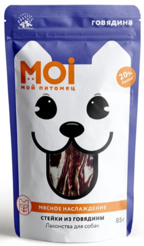 Лакомство для собак MOI стейки из говядины пл/пак 85г. Мой питомец-моё отражение. Лакомства «Moi» – все, чтобы питомец был счастлив! Аппетитные стейки из мяса - настоящее мясное наслаждение. Состав из натурального мяса говядины и сыромятной кожи, лакомство идеально подходит для поощрения питомца. Это несомненно не просто вкусное, но еще и полезное дополнение к постоянному рациону питомца. Состав: мясо говядины, сыромятная кожа, сорбит(подсластитель), растительный белок, крахмал, растительный глицерин Подробнее