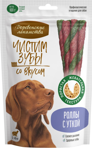 Лакомство Деревенские лакомства Чистим зубы для собак, роллы с уткой, 100 г