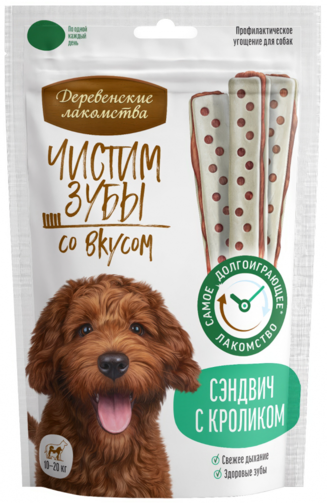 Лакомство Деревенские лакомства Чистим Зубы сэндвич с кроликом для собак средних пород 90 г
