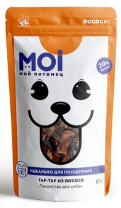 Лакомство для собак MOI тар-тар из лосося пл/пак 85г. Мой питомец-моё отражение. Лакомства «Moi» – все, чтобы питомец был счастлив! «Тар-тар из лосося» - питательное лакомство из лосося, которое содержит 20% белка. Это несомненно не просто вкусное, но еще и полезное дополнение к постоянному рациону питомца. Состав: лосось, сыромятная кожа, сорбит(подсластитель), растительный белок, крахмал, растительный глицерин Подробнее
