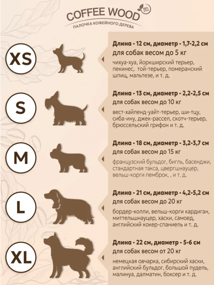 Палочка кофейного дерева Coffee Wood XS 12 см / Жевательное лакомство для чистки и здоровья зубов