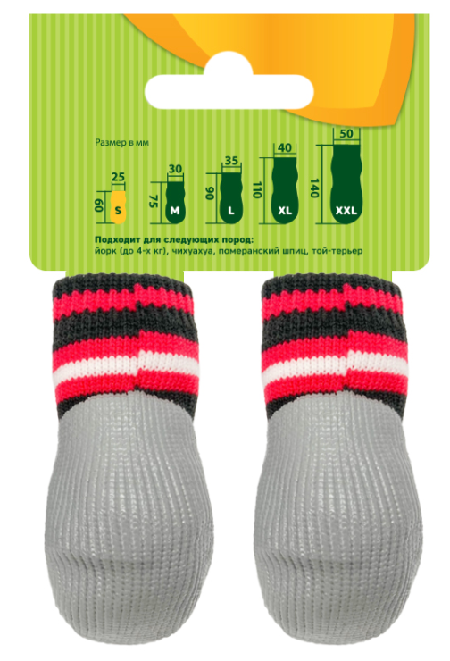 Комплект носков для собак "Полоски" состоит из четырех изделий, выполненных преимущественно из хлопка с водостойким нитриловым покрытием на подошве. Нитриловое покрытие изготавливают из искусственно синтезированного каучука, пришедшего на смену натуральному латексу. Нитрил не вызывает аллергии, более прочный и износостойкий. Используя такие носочки на улице, Вы защитите лапы собаки от снега, слякоти, реагентов и порезов. В домашних условиях такие носочки ограждают интерьер от когтей любимца и, благодаря противоскользящему покрытию, позволяют четвероногому питомцу с комфортом передвигаться по паркету, кафелю и другим скользким покрытиям. Носочки легко одевать, а благодаря эластичным резинкам они не слезают с лап животного. Изделия просты в уходе и избавят вас от регулярного мытья лап собаке после прогулки. Цвет: серо-черный с красным. Размеры изделия: 30*75мм. Подробнее