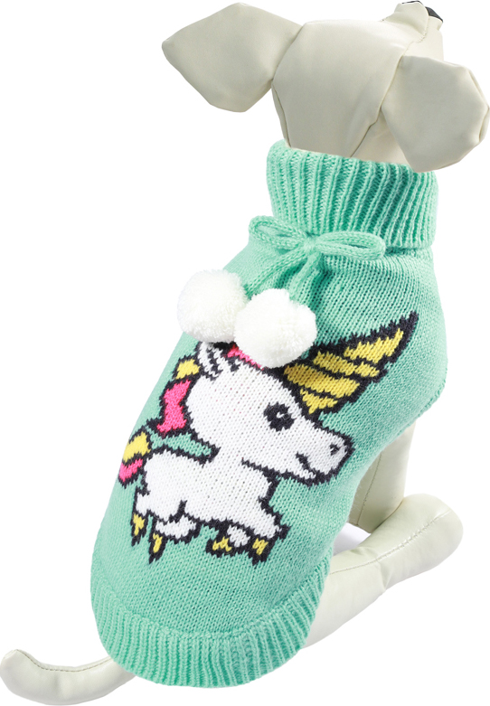 Теплый и оригинальный свитер с изображением единорога - это удобный и функциональный аксессуар для собак, который просто незаменим в холодную погоду. Изделие защитит вашего питомца от ветра и согреет в непогоду. Свитер имеет стильный дизайн, а универсальный фасон не стесняет движений питомца во время прогулки. Вывязанная резинка по всему периметру низа изделия обеспечивает плотное прилегание свитера к телу, ворот украшен помпонами. Такой свитер с модным принтом станет украшением гардероба вашего питомца. Материал: акрил. Цвет: мятный. Размер: 35см (L). Состав: Акрил Подробнее