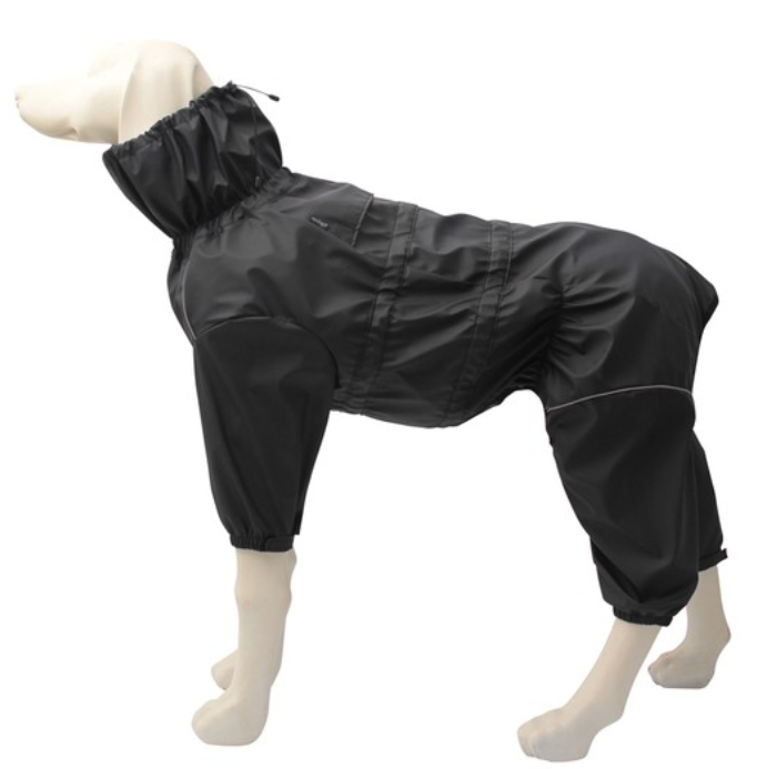 Костюм-дождевик OUTDOOR Cross с высоким воротом - идеальное решение для комфортных прогулок даже в самую ненастную погоду. Особенностью изделия является его водонепроницаемый материал - полиуретановая кожа - это инновационный и высокотехнологичный материал, обладающий отличными характеристиками и имеющий структуру и строение натуральной кожи. Такая одежда защитит шерсть животного от дождя и грязи, а непродуваемая ткань - от сильного ветра и холода. Благодаря высокому воротнику и регулировке по линиям шеи и талии костюм-дождевик садится "по фигуре" питомца и не стесняет его движений во время прогулки. Изделие надежно фиксируется при помощи молнии на боку и двух эластичных пряжек, а на штанинах предусмотрены удобные резинки, препятствующие попаданию грязи или налипанию снега снизу. Ширина штанин регулируется за счет липучек. Светоотражающие полоски обеспечивают безопасность питомца в темное время суток. Костюм без подкладки. Цвет: черный. Длина по спинке: 500мм; обхват груди: 650-780мм; обхват шеи: 460-500мм. Подробнее
