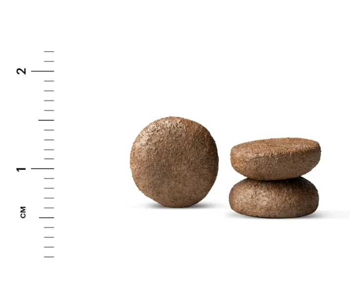 Дегидрированное мясо (в т.ч. телятина), цельные злаки, животный жир (в т.ч. лососевый, консервированный витамином E), растительная клетчатка, гидролизованные мясные белки, высокоусвояемый растительный белок, витаминно-минеральный комплекс, пивные дрожжи (источник маннанолигосахаридов), Юкка Шидигера, морская капуста, пробиотики (Bacillus subtilis, Bacillus licheniformis), сушеное яблоко. Сохранено витамином С и природным токоферолом (источник натурального витамина Е).