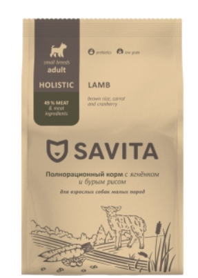 Корм Savita для собак малых пород, ягнёнок с бурым рисом, 15 кг