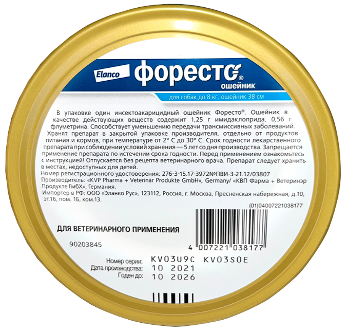 Непрерывное использование ошейника Форесто обеспечивает защиту животных на протяжении 8 месяцев.