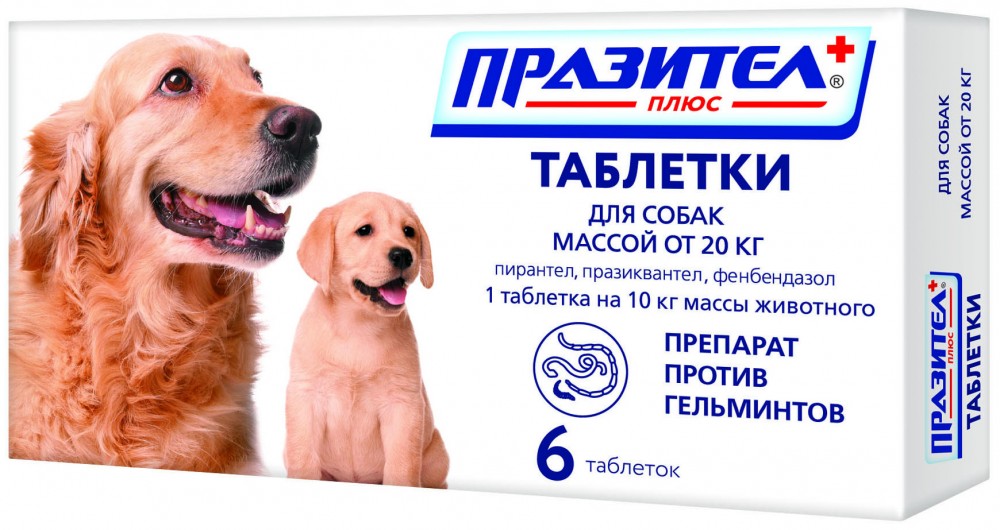 Препарат противопаразитный для собак и щенков Астрафарм Празител плюс средних и крупных пород 6таблеток