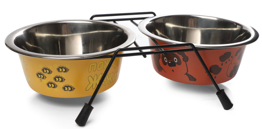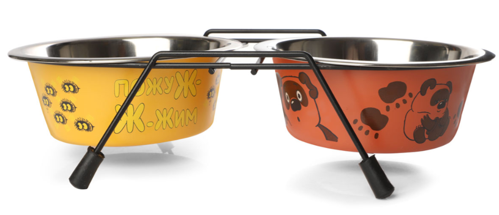 Triol СОЮЗМУЛЬТФИЛЬМ Миска для животных металлическая двойная на подставке "Пожужжим", 2*0.75л
