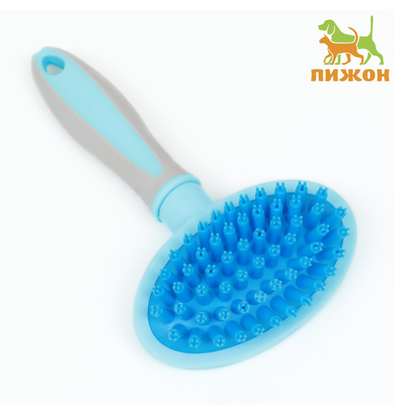 Щётка-массажёр для животных, 9.5×16.5 см, с силиконовыми зубьями, средняя, пластик, голубая