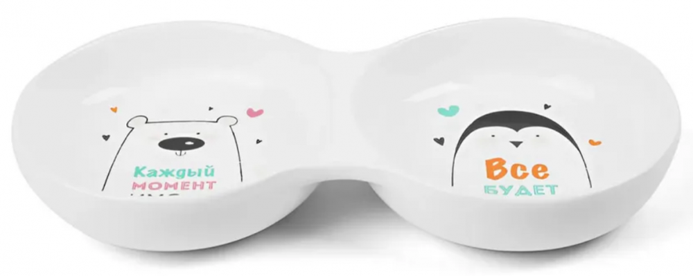 Стильная и функциональная миска для кошек и собак мелких пород выполнена из высококачественной керамики оригинальной расцветки. Такая миска - идеальный способ обеспечить питомцу одновременно и свежую воду, и корм. Изделие комфортно для питомца и легко моется под струей проточной воды с использованием моющих бытовых средств. Цвет изделия: белый. Размер изделия: d дна половинки - 80мм; d верхней части - 110мм; высота - 30мм. Объем - 2*0,2л. Подробнее
