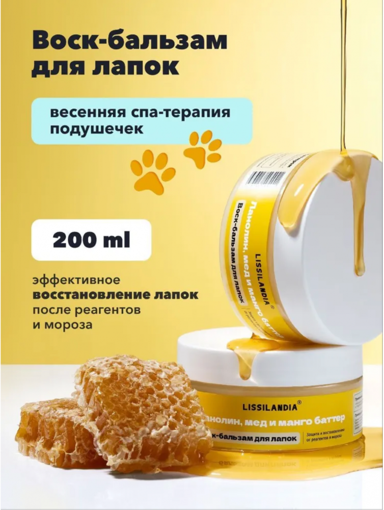Воск-бальзам для лап Лиссиландия защита и восстановление подушечек лапок с ланолином, экстрактом мем