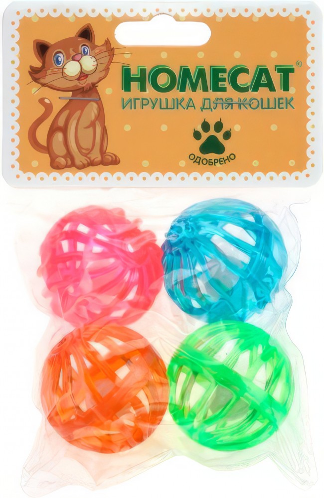 Homecat Игрушка Мячи для кошек, пластиковые, калейдоскоп с колокольчиком, 4 шт, 4 см