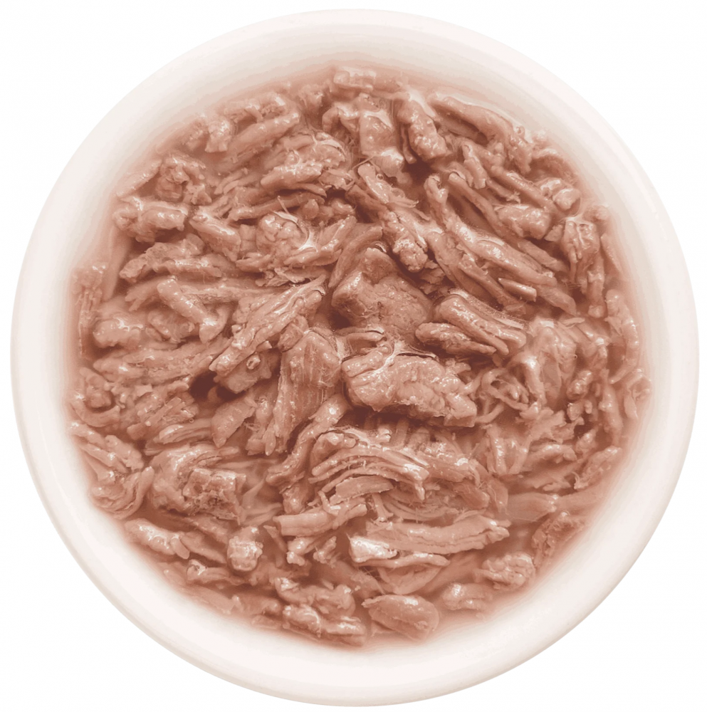Состав: утка 58 %, бульон из утки 40 %, натуральная желирующая добавка.nПищевые добавки: пивные дрожжи (источник пребиотика МОС), пребиотик ФОС, рыбий жир (анчоус), витамин Е, таурин, минералы.nПищевая ценность, %: протеин — 11, жиры — 2, клетчатка — 1, зола — 1,5, влажность — 89; энергетическая ценность — 55 ккал.