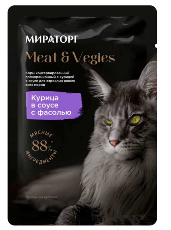 Корм Мираторг Meat & Vegies (в соусе) для кошек, с курицей и фасолью, 80 г