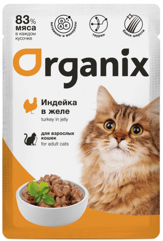 Паучи Органикс Индейка: ЖЕЛЕ 85 г для кошек