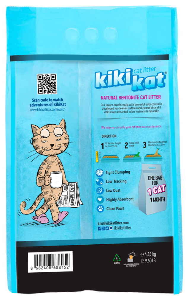 Бентонитовый наполнитель для кошачьего туалета KikiKat супербелый комкующийся, с активированным углем 5 л