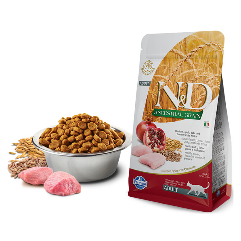 Корм FARMINA для взрослых кошек, курица с гранатом и спельтой, низкозерновой
