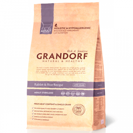 Корм сухой Grandorf Sterilised кролик с рисом для стерилизованных кошек