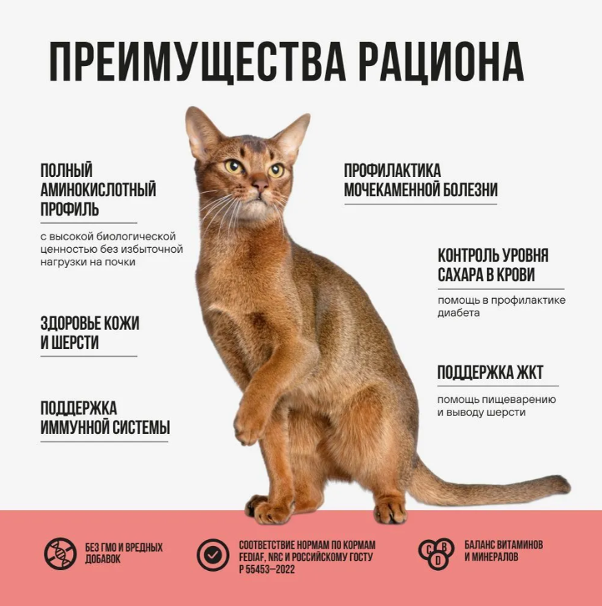 Формула содержит высокоусвояемый животный белок, тыкву и шпинат для поддержания кишечника, рыбий жир