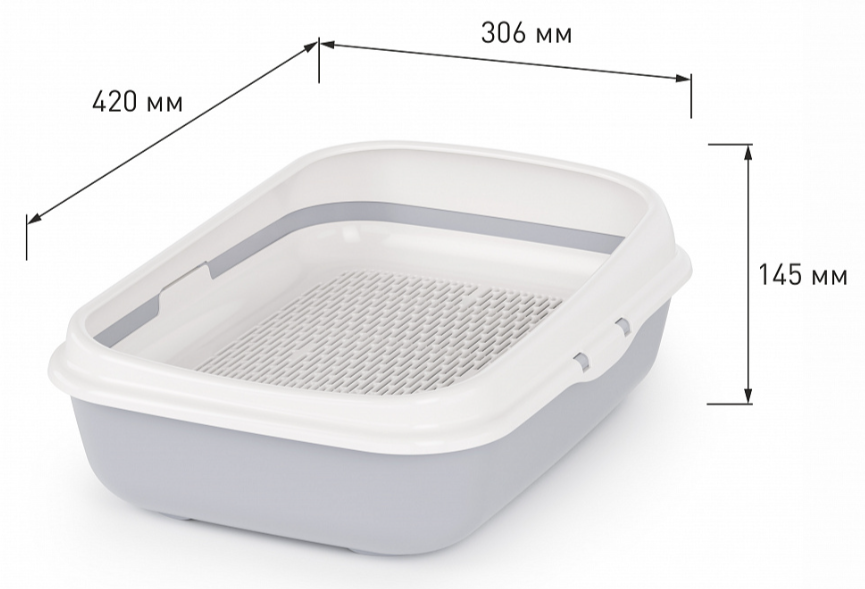 Главным преимуществом наших изделий является продуманные до мелочей размеры лотка, благодаря которым он подойдет даже для крупных пород. Такой туалет можно использовать как лоток для собак или других домашним животных. Благодаря высокому борту наполнитель не разбрасывается по комнате, а остаётся в лотке. Борт крепится к лотку крепкими защелками и легко убирается при необходимости. Сетка с высокими ножками позволяет использовать различные виды наполнителя или не использовать никакой. Будьте уверены- ваш питомец точно не намочит лапки. Эргономичная форма и актуальные цвета наших лотков прекрасно впишутся в любой интерьер Подробнее