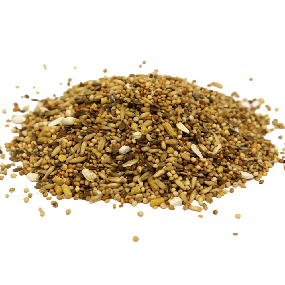 Смесь содержит девять видов семян, обеспечивающих сбалансированный и разнообразный рацион для волнистых попугайчиков.