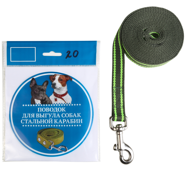 Поводок Амуниция.рф брезентовый усиленный 5м. ширина 30мм. Цвет в ассортименте