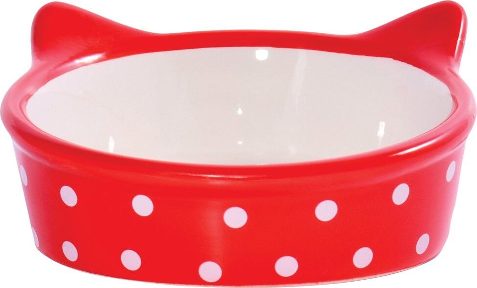 КерамикАрт миска керамическая для кошек "Мордочка кошки", 250 мл, красная в горошек